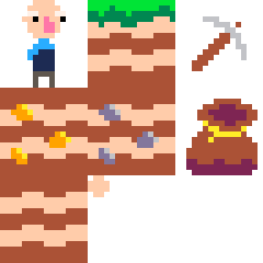 mining game with very few sprites drawn in the pico-8 colour palette